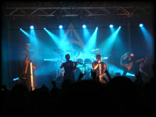 Subway To Sally sind ja mittlerweile bekannt dafür, meist ziemlich – sagen wir seltsame – Vorbands mit auf Tour zu nehmen. Krypteria sind da keine Ausnahme. Man darf zwar behaupten, dass sie in die oberen Ränge der Subway-Vorbands gehören, aber wirklich umwerfend ist die Band nicht. Richtig schlecht sind sie ja nicht, aber es ist eben nur eine unter vielen Metalbands mit Frau am Gesang. Mit Somebody Save Me startet die deutsch-koreanische Band ihren Auftritt, bei dem sie ausschließlich Stücke ihrer im Januar erscheinenden CD Bloodangel’s Cry spielt. Verwirrung im Publikum stiftet der Song I Scream: „Was singt die? Icecream?“. Ansonsten ist Frontfrau Ji-In Cho’s Gesangsleistung absolut top, und Drummer S. C. Kuschnerus wirkt oftmals unterfordert und macht fröhlich seine Drumstick-Jonglier-Spielchen, während der Tour-Keyborder hochkonzentriert über sein Instrument gebeugt ist. Wie gesagt, nicht schlecht, aber irgendwie ein Nightwish-Gothic-Abklatsch, wobei eher Gothic, wie Titel wie Out Of Tears und The Night All Angels Cry beweisen. Nun ja, nicht das Gelbe vom Ei, aber immerhin anhörbar und durchaus erträglich.