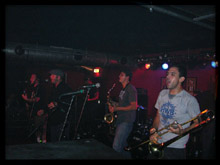 Den Anfang bestritten die Zweibrücker Lokalhelden Ska Einsatzkommando und obwohl sich zu dieser Zeit noch recht wenige Leute versammelt hatten, machte der scheinbar mitgereiste Fanclub von ca. 10-15 Leuten das zahlenmäßige Defizit durch ausgiebige Skank-Aktivitäten wieder weg. Die derzeit achtköpfige Truppe, die bereits seit 1999 (wenn auch in anderem Lineup) durch die Lande tingelt, konnte mit einem Mix aus klassischem 2- Tone, Swing und einer nicht zu unterschätzenden Prise Punk durchaus begeistern, wobei auch tempomäßig für jeden Geschmack was dabei war. So tummelten sich im Laufe des Auftritts auch immer mehr tanzfreudige Besucher vor der Bühne um die Beine zu schwingen. Auch das Einsatzkommando selbst swingte und skankte was das Zeug hielt. Die Songs vom 2006 erschienenen Album (On Vacation) wie beispielsweise Let Yourself Go, Better Anyway und der extrem tanzbare Moonhop ernteten (natürlich vor allem bei den eingefleischten Fans) ordentlich Applaus. Nach einer guten halben Stunde kam mit Drunken Nights noch der bandeigene Gassenhauer zum Einsatz, zu dem die angereisten Fans noch mal alle Kräfte mobilisierten. Nach knappen 40 Minuten war dann Schluss. Sehr schön.