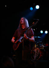 Nun kommen wir in den Genuß eines „historischen“ Konzerts. Rage haben sich erst vor kurzem von ihrem langjährigen Drummer Mike Terrana getrennt und spielen heute in Illingen das erste Konzert mit ihrem neuen Drummer André Hilgers. So werden wir ganz unverhofft Zeugen einer Weltpremiere. Zunächst einmal fallen die optischen Veränderungen in der Band auf: Peavy gibt es jetzt mit tollem Zopf im Gesicht und Victor scheint ein Faible für unglaublich unvorteilhafte Bartfrisuren zu haben. Nur der Drummer sieht jetzt besser aus als vorher. Doch hier geht es nur sekundär um die optischen, als vielmehr um die musikalischen Qualitäten der drei Herren. Dabei sind wohl viele auf die Setlist gespannt, denn allzu viele Songs konnte sich André Hilgers in der kurzen Zeit sicher nicht draufschaffen.