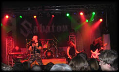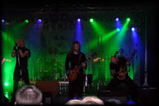Die Drumsolo-Hasser verdrehen bereits die Augen („Nicht die auch noch…!“), doch die Sache entwickelt sich noch sehr interessant. Denn bei seinem Solo wird Karlsson von den beiden Sängern Mats Levén und Snowy Shaw tatkräftig unterstützt. Auch bei den späteren Stücken kommen die beiden dann immer wieder zum Einsatz. Daß Snowy Shaw bei der ganzen Poserei auch schon mal ein Drumstick abhanden kommt, fällt dabei musikalisch noch nicht einmal auf. Therion setzen danach ihren Auftritt mit The Rise Of Cthulhu fort. Leider ist der Gig kurze Zeit später schon beendet, doch wird der Abschied versüßt mit einem gelungenen Arrangement, bei dem die Sänger während eines Gitarrensolos von Mastermind Christofer Johnsson, mit schwarzen Flaggen auf der Bühne posieren. Ein würdiger Abschluß für dieses großartig inszenierte Gesamtkunstwerk! Aber für einen absolut perfekten Konzertabend fehlt natürlich noch die Zugabe der Schweden. Als sie auf die Bühne zurückkehren, spielen sie neben Lemuria noch ein paar andere Stücke, bevor dieser herrliche Abend zu Ende geht. Wirklich enttäuscht bin ich jedoch, als ich mich kurz vor Ende des Konzerts mal umdrehe: Gähnende Leere. Waren die alle nur wegen Grave Digger da? Oder mußten alle schon früher nach Hause? Therion-Fans, wo seid ihr???