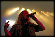 gewidmet, beginnt der Auftritt der Band. Sänger Attila Dorn begrüßt die versammelte Meute und entwirrt sein Haupthaar, um es