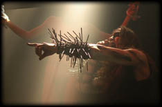 Passenderweise werden erstmal zwei große Kreuze an den Seiten der Bühne aufgebaut und dann von nackten Menschen mit