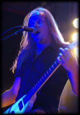 mit eigenen Kindern im Publikum (?). Das wiederum läßt so lange nicht locker, bis die Band nochmals auf die Bühne kommt, wo Tobi erstmal erklärt, daß Dirk Sauer natürlich nicht schwul ist. Ob er trotzdem gerne männliche Schlüpfer auf der Bühne haben mag, bleibt uns jedoch unbekannt. Nach Sacrifice gibt's mit Babylon, das von den Zuschauern fleißig gefordert wird, endlich mal einen richtig alten Song. Und der Sänger verspricht, auf der nächsten Tour in Saarbrücken Station zu machen. Anschließend geht der Auftritt mit King Of Fools viel zu früh zu Ende. Gerne hätten ich und auch andere noch mehr Songs gehört, der Auftritt erschien einem einfach viel zu kurz.
